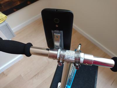 First, you need to attach your phone to the corner brace. This is best done using heavy-duty strength Velcro (just in case you need to take your phone off of the mount at any time) though any sturdy mounting material can be used. It is also best to attach the phone while it is in a case to prevent damage to the phone backing.